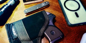 If you do, keep both of them together. Your concealed carry handgun inside a holster with high retention and a good trigger guard will be a safer package to drop off on a nearby bench. Lay them flat on the surface and away from any clothes or items which you may grab and inadvertently knock the gun off the bench.