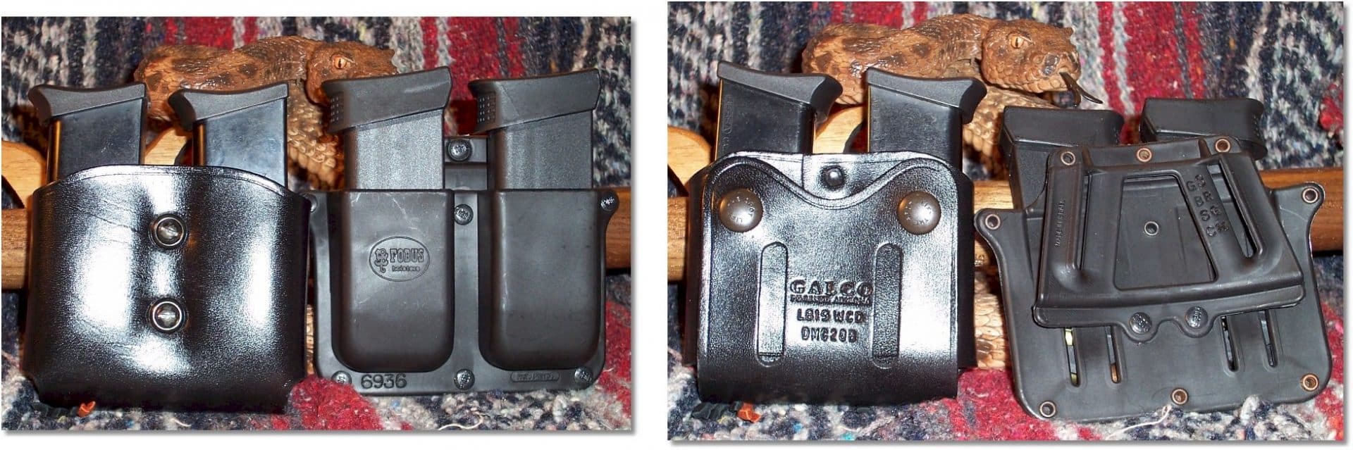 The Fobus magazine carrier is somewhat smaller than the Galco version and rides a little lower on the belt than the Galco, which is good for my long arms. The slots for the magazines are actually about the same size as the Galco even though it appears that the magazine slots in the Fobus are larger. Of course, you can adjust the tension on the Galco unit for several types of magazines, but that does not mean that the Fobus cannot accommodate magazines other than the G36. The Fobus also works for my Bersa 45UC, S&W M&P 45, and Stoeger Cougar 8045 magazines. Although the fit is not tight, it is not loose either. The tension feature inside each magazine slot keeps the magazine in place.