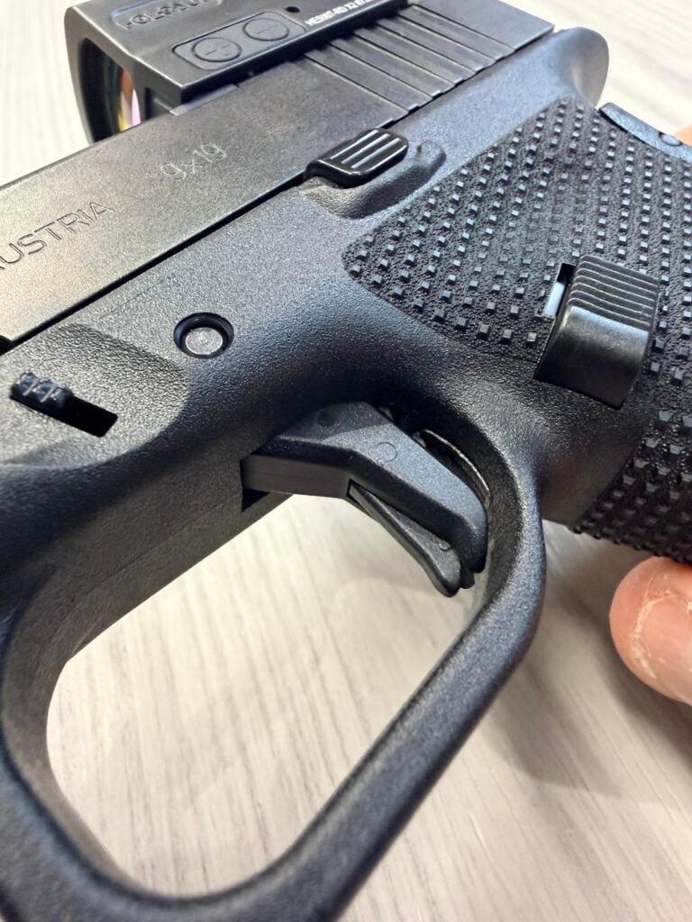 The frame also now includes a trigger guard undercut, aimed at reducing the common “Glock knuckle” irritation that many shooters experience. Along with a slightly shorter trigger reach and a flared magwell, the ergonomic changes show Glock’s effort to improve shooter comfort and control without compromising reliability.