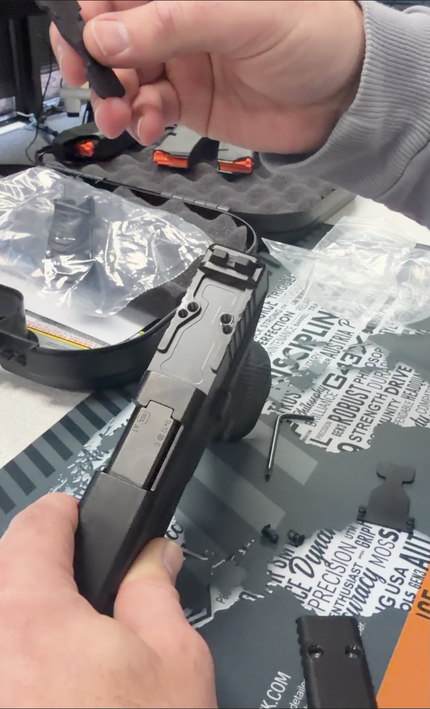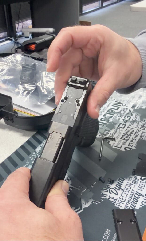 At the top of the list is Glock’s redesigned optics system, which blends characteristics of both direct-mount and plate-based configurations. The Gen 6 pistols ship with three polymer plates — including one for the Trijicon RMRm Leupold DeltaPoint and another footprint that may support the Steiner MPS. Glock explained that the polymer plate acts like a shock absorber. It’s slightly taller than the milled cut, compressing as the optic is torqued down, resulting in a lower mounting profile than traditional plate setups.