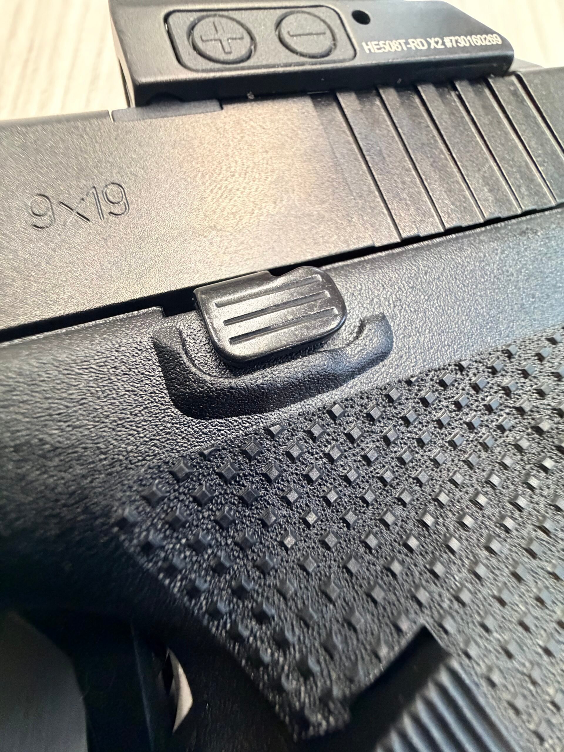 Slide serrations at the front and rear have been deepened and now taper down, offering more positive traction. A protective ridge has been added around the slide stop lever, designed to address issues reported by shooters with high thumbs inadvertently riding the lever and preventing slide lock. John Lovell of Warrior Poet Society noted that this fix prevented the slide from failing to lock back during his time on the range.